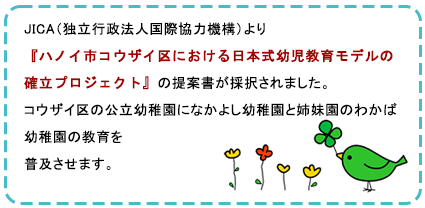 日本国内、ベトナム国内の幼稚園を数多く見てきましたが、どこもお勉強的なことだけを重視しすぎている傾向が見られます。お勉強に時間をかけすぎて、遊びで育つ豊かな心、運動で身につく健康や自信や積極性、芸術活動で育まれる感性などのたくさんの能力を手に入れないのはもったいなくないですか?