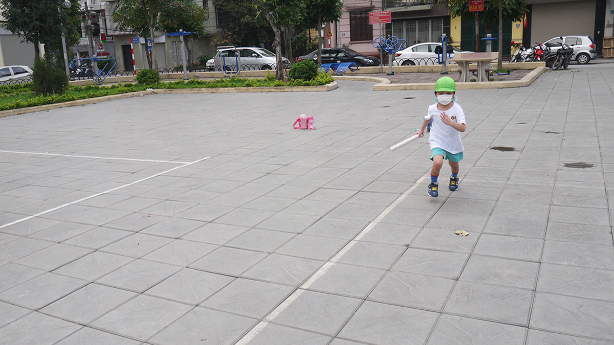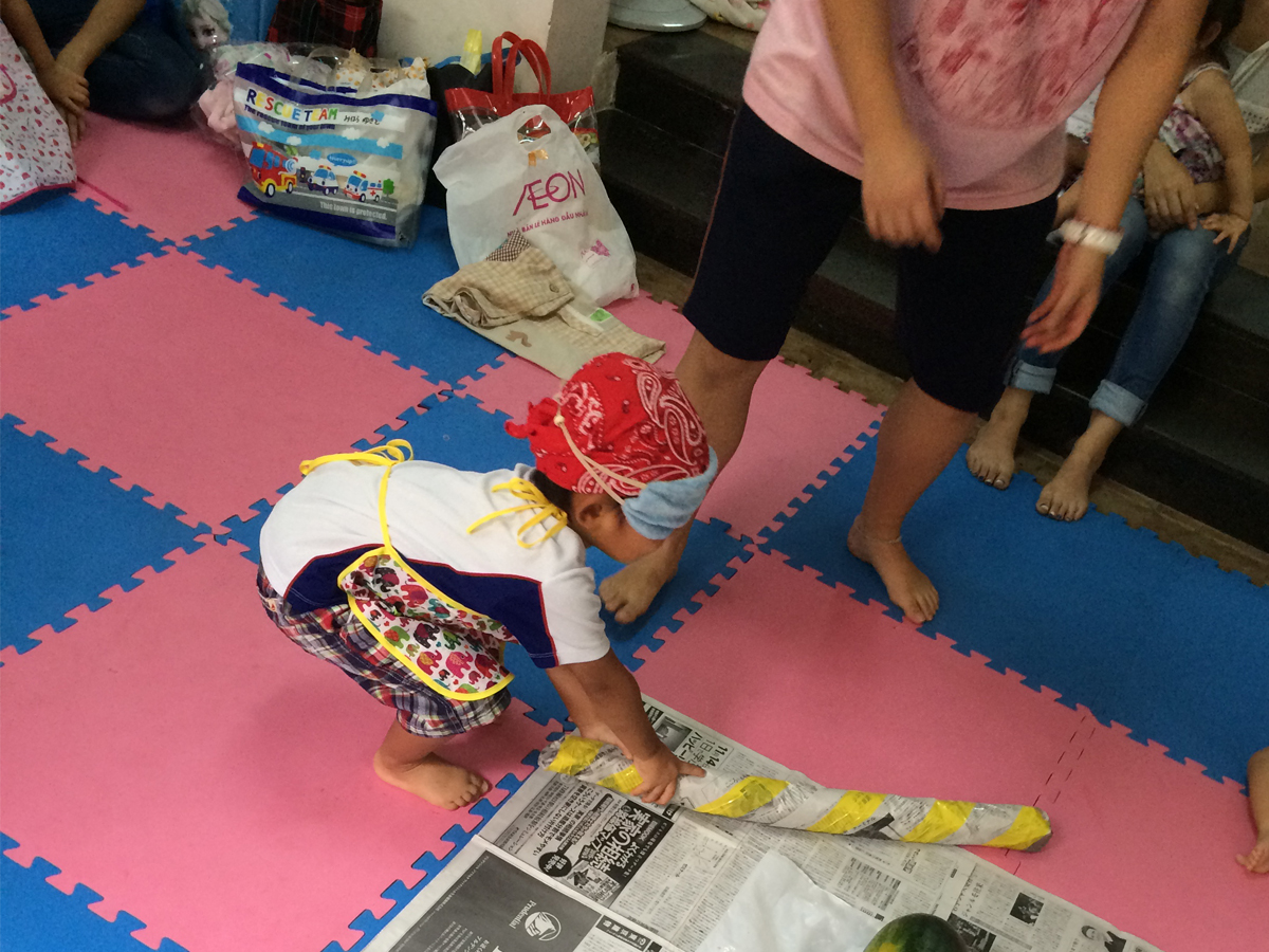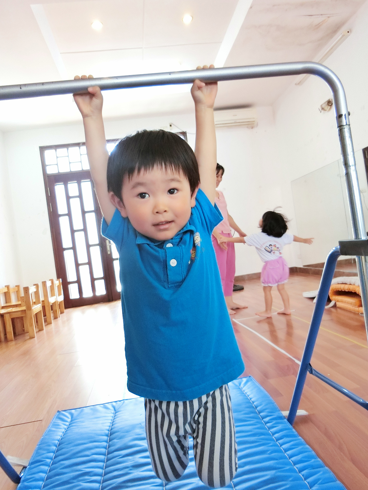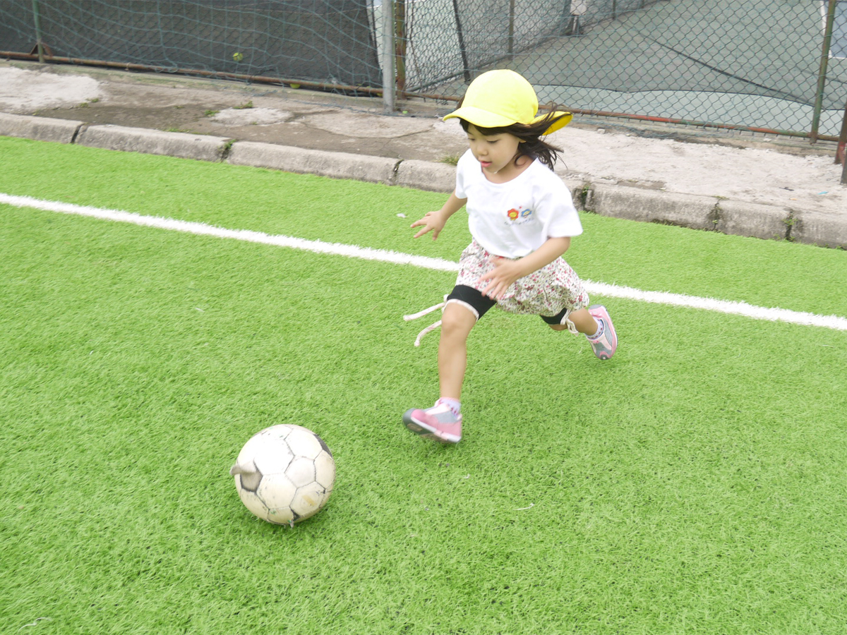 脳は心のありかです。脳科学では、「幼児の脳が一番発達するのは、友達と楽しく運動をするとき」という研究結果があります。また、適度な運動で「成長ホルモン」と、「セロトニン」という精神を安定させる癒しのホルモンが分泌されます。昼間の運動量が少ないと、セロトニンが減ってイライラしたり、不安定になったり、切れやすくなったりします。また、セロトニンの不足は記憶力にも悪影響を与えます。セロトニンは日光を浴びるとたくさん分泌されます。本園では外で体を動かすことを重要視し、ハノイで一番運動をする園を目指して、スイミング、器械体操、剣道など様々な運動遊びを実施しています。
