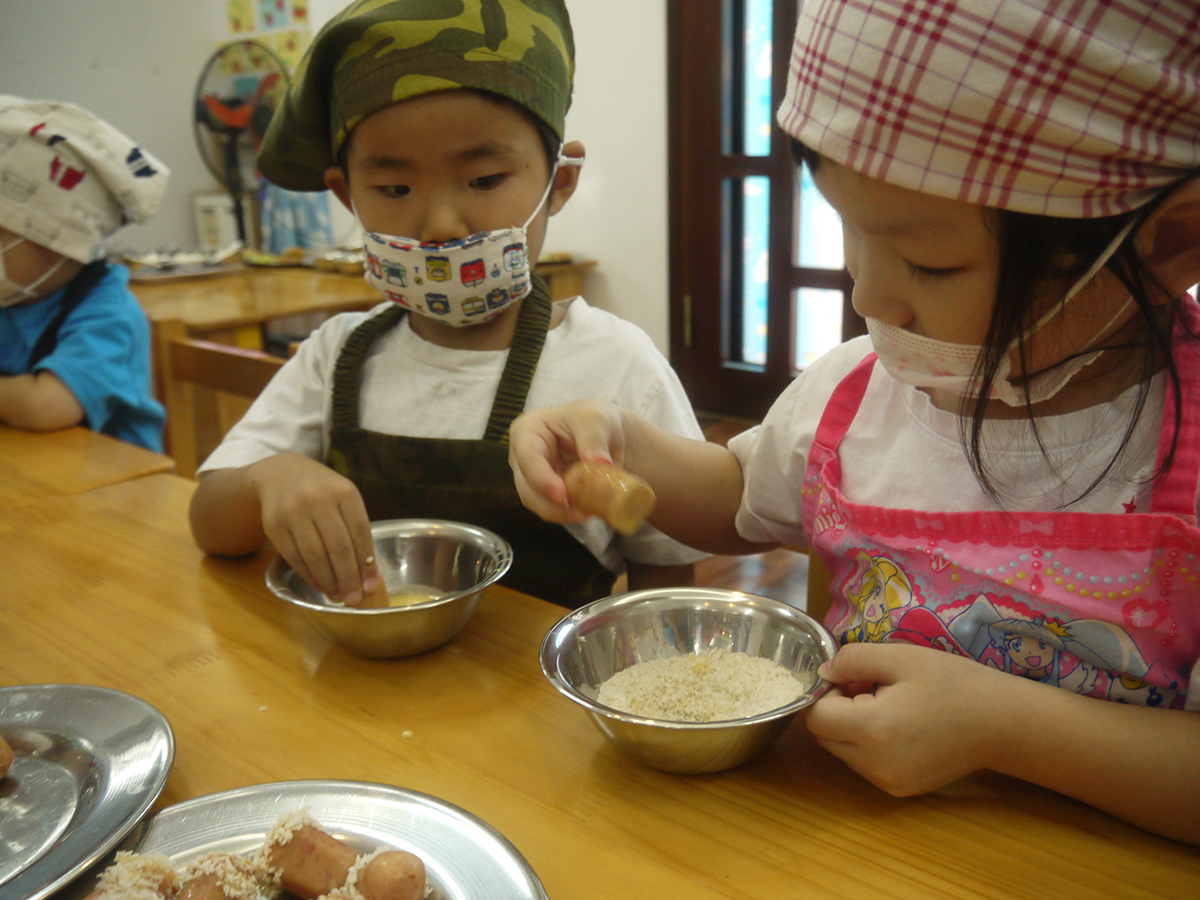 日本の幼稚園や学校では当たり前のように実施されている食育。本園でもクッキング、野菜栽培、農場遠足などの活動で食への興味、関心を引き出したり、給食を残さず食べる、マナーを守る、栄養についてなどを教えたりしています。海外では「好きなものを好きなときに食べる」、「食べない子供を外に連れ出して気を紛らわして食べさせる」などが目立ち、日本の幼稚園のような食育を行うところはあまりないようです。