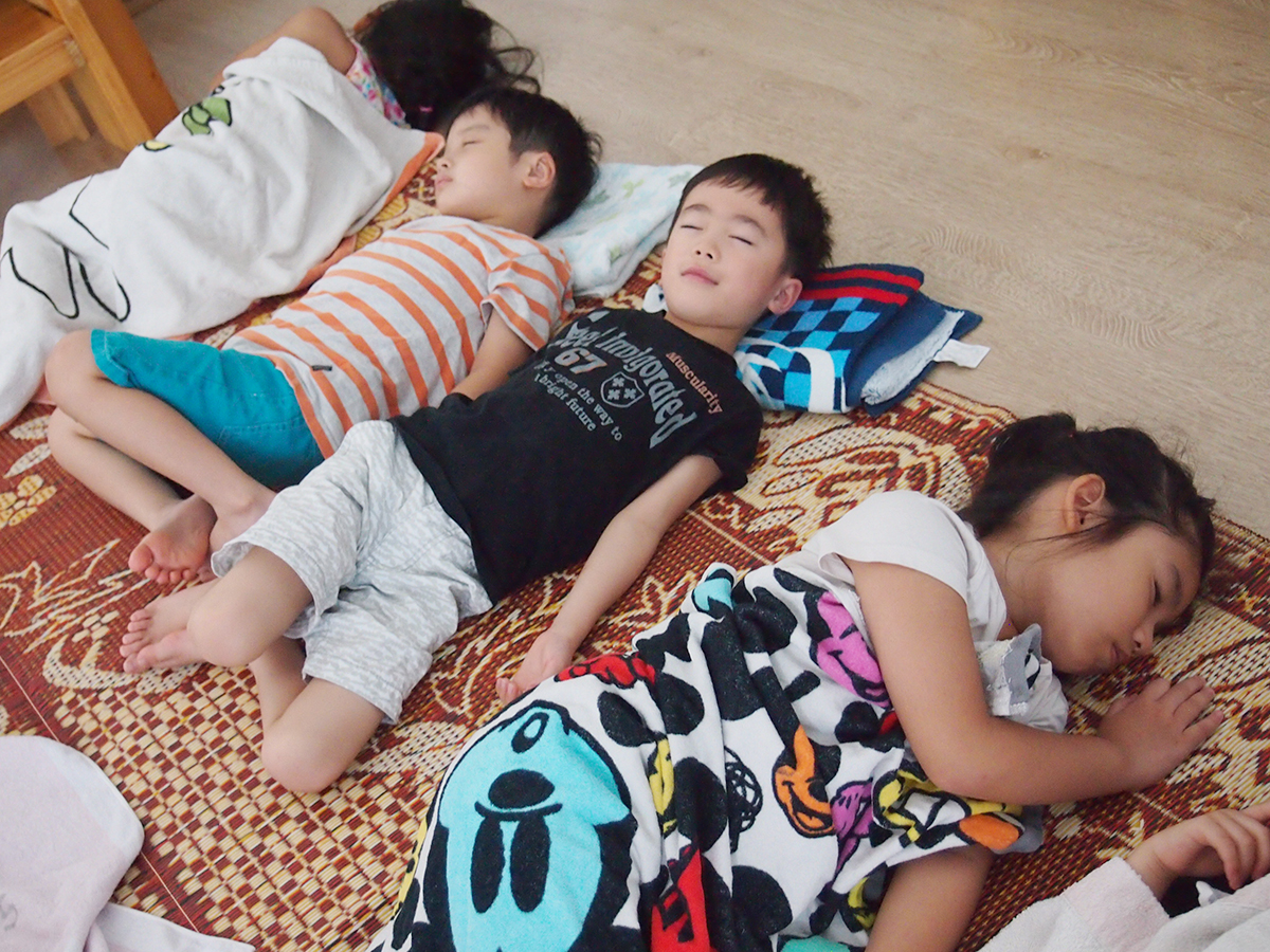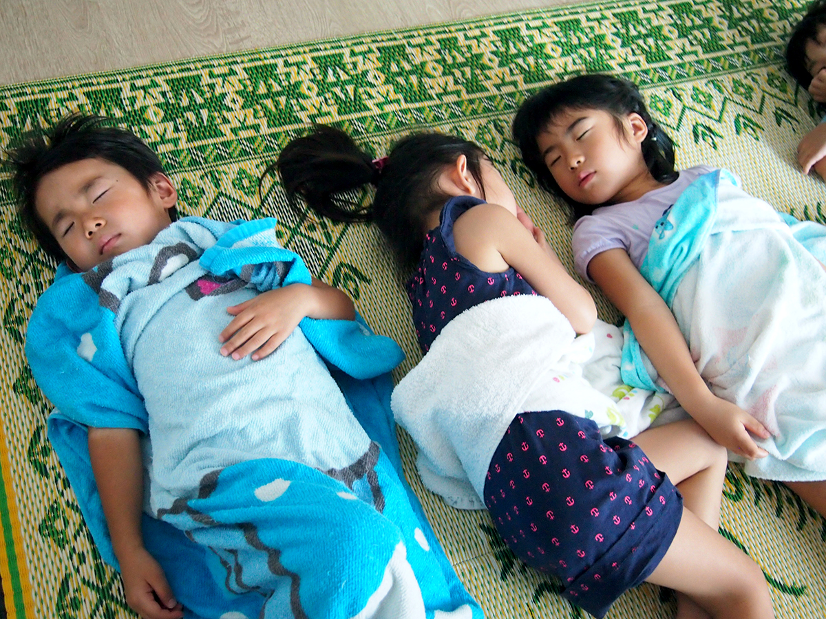 成長ホルモンはノンレム睡眠時により多く分泌されます。20時に布団に入ってしばらくして寝付けば、22時ころに1回目のノンレム睡眠に至りますので、「22時ころが成長ホルモンのゴールデンタイム」だと言う人もいます。また、太陽の下で運動したことで分泌されるセラトニンは、睡眠時にメラトニンという深く眠れるようしてくれるホルモンに変化します。昼間外遊びをして夜たくさん寝るという日本の生活サイクルはすばらしいですね。